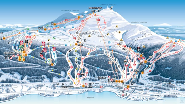 Slēpošanas trases: ~98–101 nobraucieni / nogāzes ar pacēlājiem visā teritorijā.